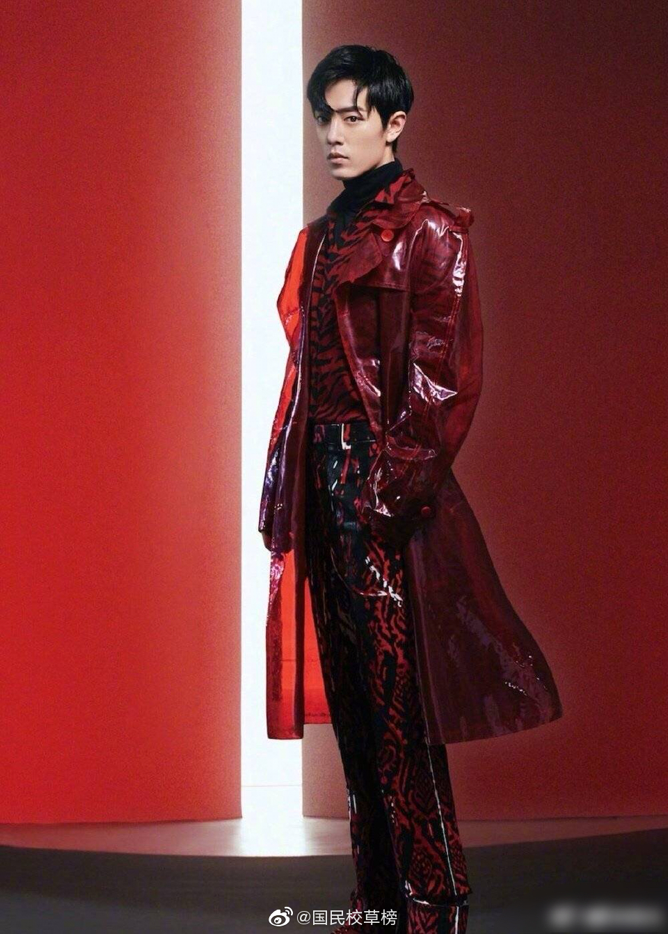 > 肖战红色塑胶衣是不是超级温暖超级帅呀?