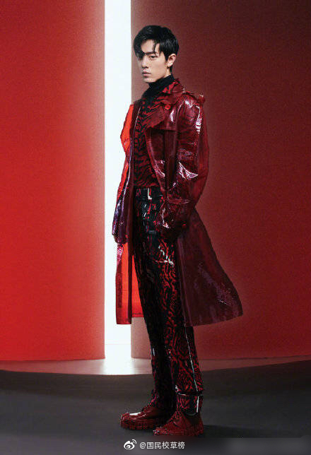 肖战红色塑胶衣是不是超级温暖超级帅呀?
